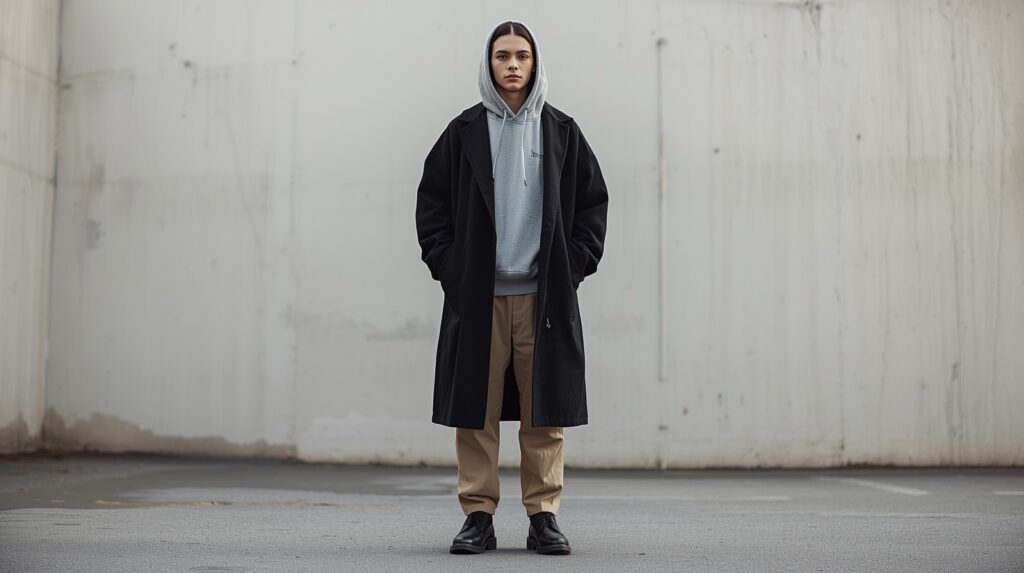 4. Oversized Hoodie + Coat + Straight Pants