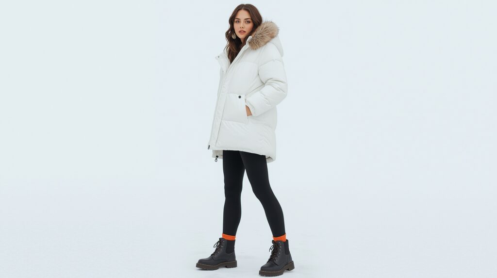 Pair it with warm leggings and snow boots for a comfortable, practical, and stylish outfit.