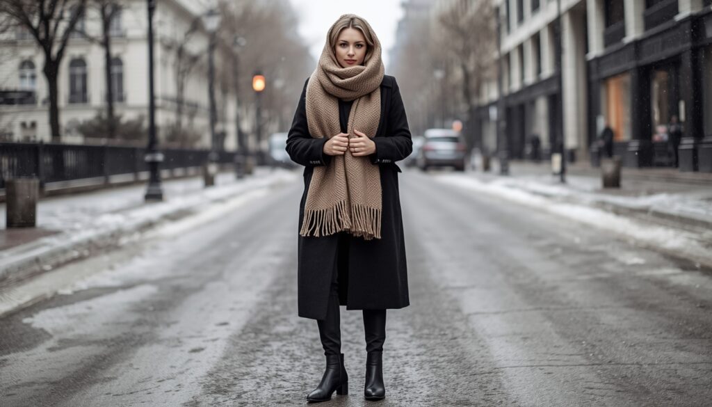 Style Tip: Choose matching scarf and coat colors for a clean, aesthetic finish.